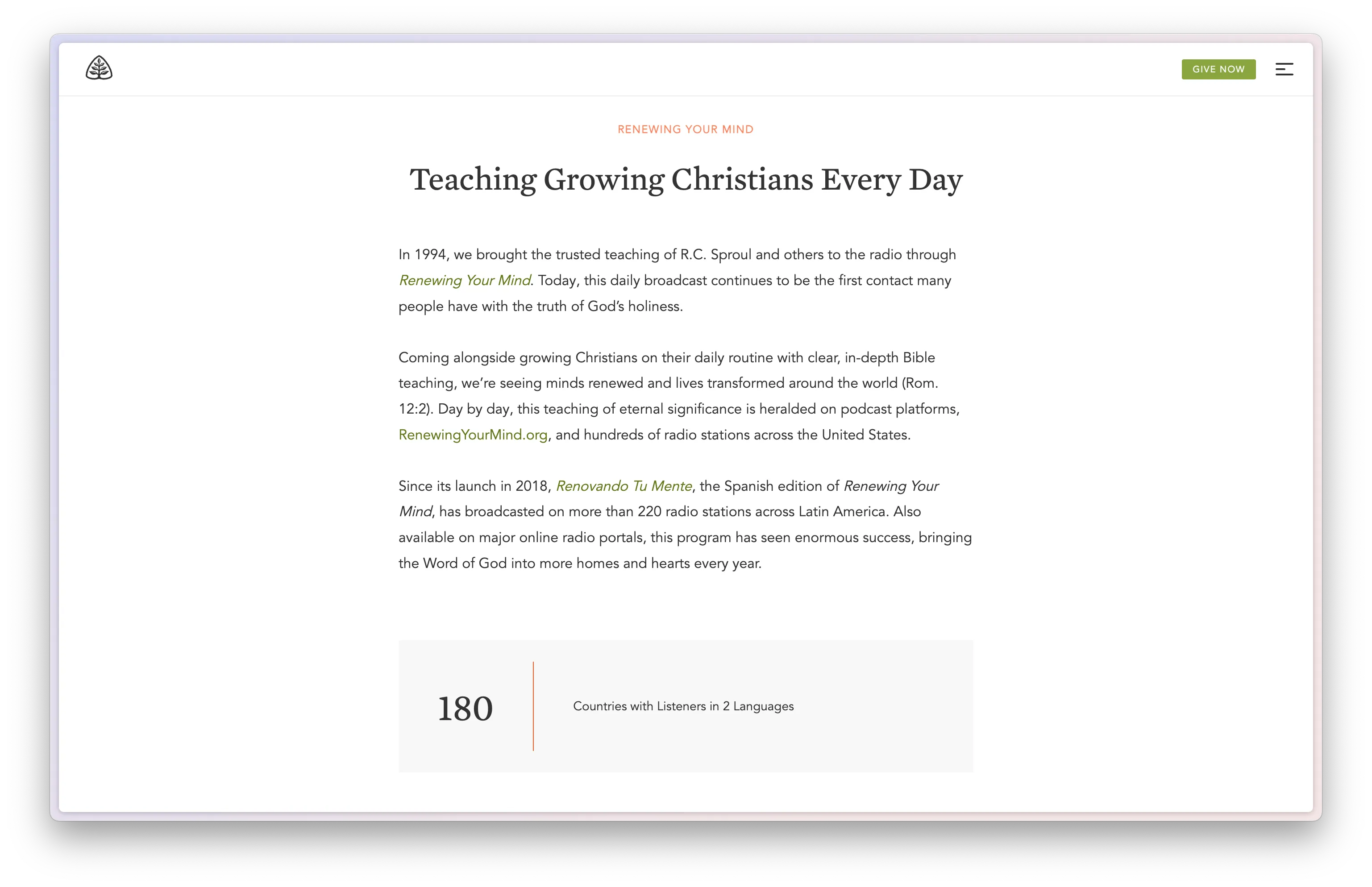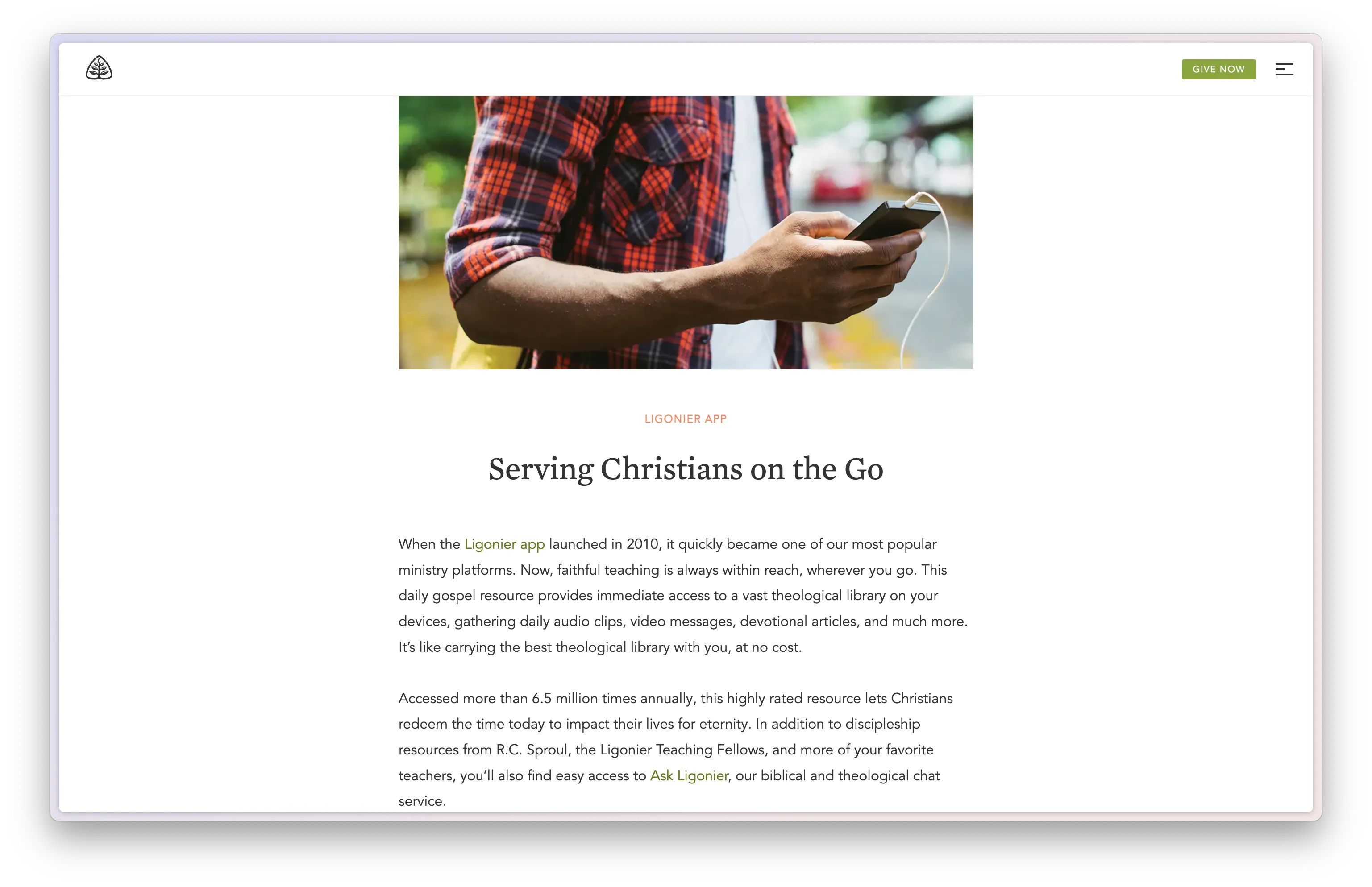 The website is designed to showcase the outreach of Ligonier Ministries and provide an ongoing source of information for their services. It features a clean and modern design, with a focus on readability and accessibility.