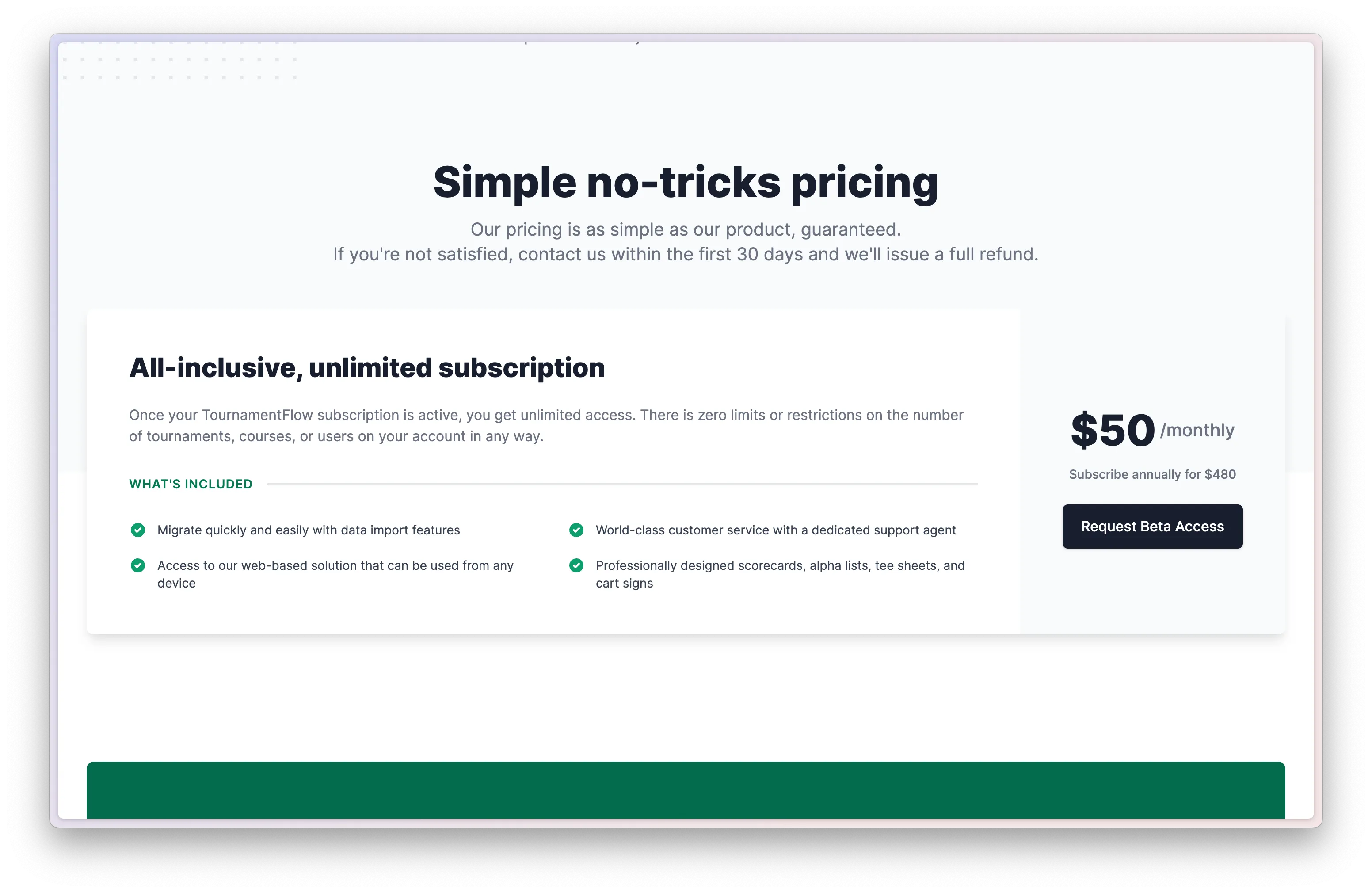 TournamentFlow is the world's most modern, simplistic and inexpensive golf tournament & league management software.